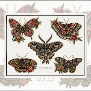 Flash Tattoos Vintage Butterfly Tattoo Traditional Moth Tattoo Traditional Tattoo Prints